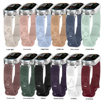 Correa de silicona grabada con láser con patrón de diente de león floral aplicable para Xiaomi Mi Band 10/8/9 correas de reloj inteligente de repuesto